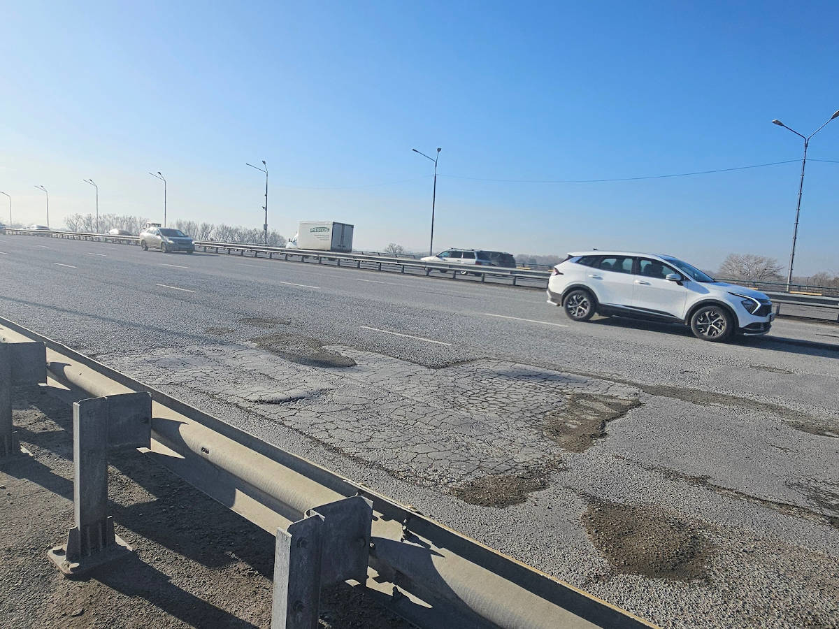 В Усть-Каменогорске снова латали ямы на Иртышском мосту